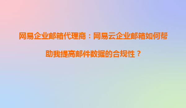 网易企业邮箱代理商:网易云企业邮箱如何帮助我提高邮件数据的合规性?