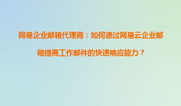 网易企业邮箱代理商:如何通过网易云企业邮箱提高工作邮件的快速响应能力?