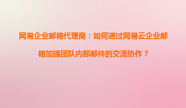 网易企业邮箱代理:如何通过网易云企业邮箱加强团队内部邮件的沟通协作?
