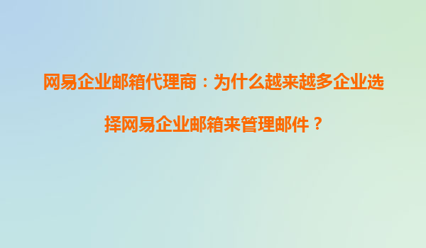 网易企业邮箱代理商:为什么越来越多企业选择网易企业邮箱来管理邮件?