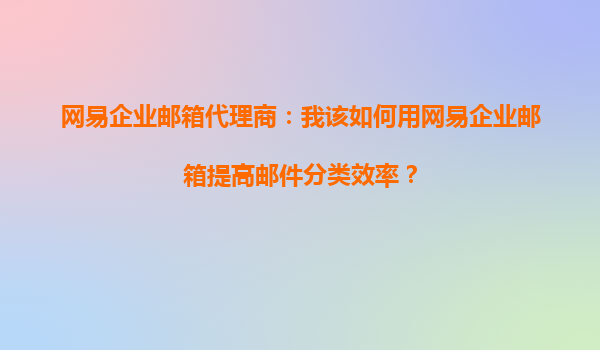 网易企业邮箱代理商:我该如何用网易企业邮箱提高邮件分类效率?