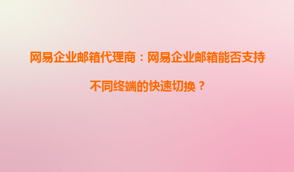 网易企业邮箱代理商:网易企业邮箱能否支持不同终端的快速切换?