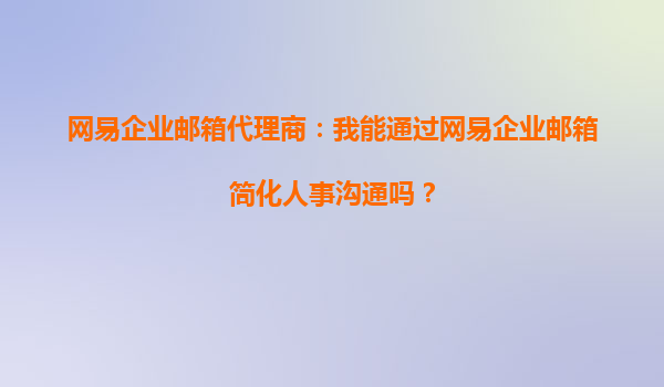 网易企业邮箱代理商:我能通过网易企业邮箱简化人事沟通吗?