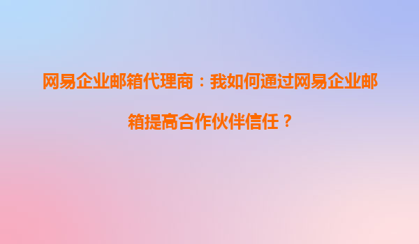 网易企业邮箱代理商:如何通过网易企业邮箱提高合作伙伴信任?