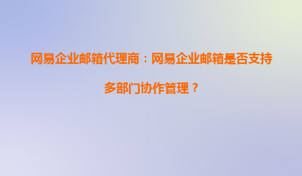 网易企业邮箱代理商:网易企业邮箱是否支持多部门协作管理?
