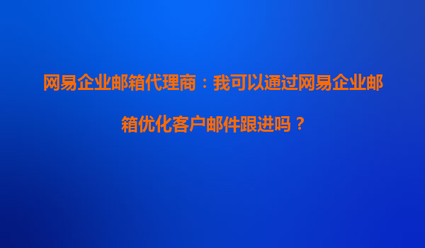 网易企业邮箱代理商:我可以通过网易企业邮箱优化客户邮件跟进吗?