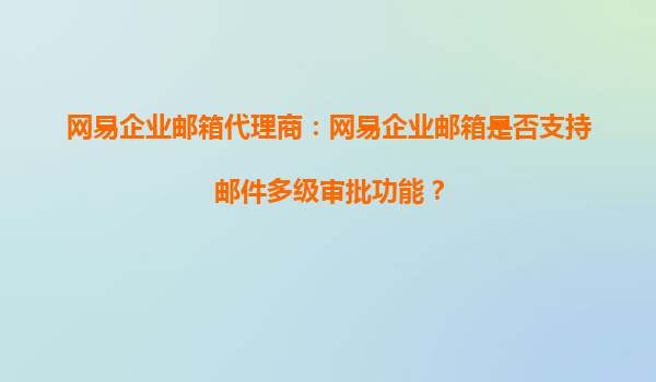 网易企业邮箱代理商:网易企业邮箱是否支持邮件多级审批功能?