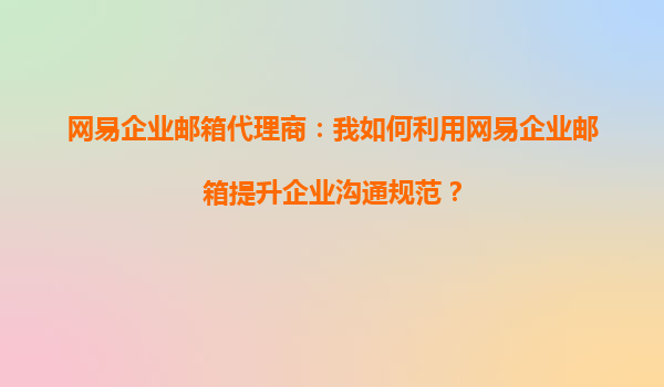 网易企业邮箱代理商:我如何利用网易企业邮箱提升企业沟通规范?