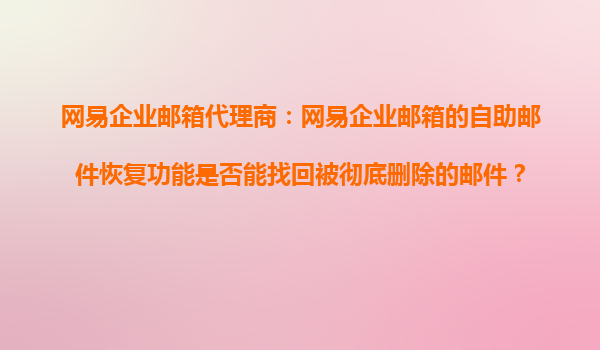网易企业邮箱代理商:网易企业邮箱的自助邮件恢复功能是否能找回被彻底删除的邮件?