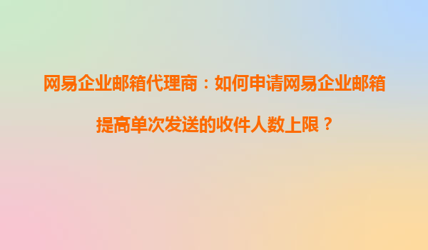 网易企业邮箱代理商:如何申请网易企业邮箱提高单次发送的收件人数上限?