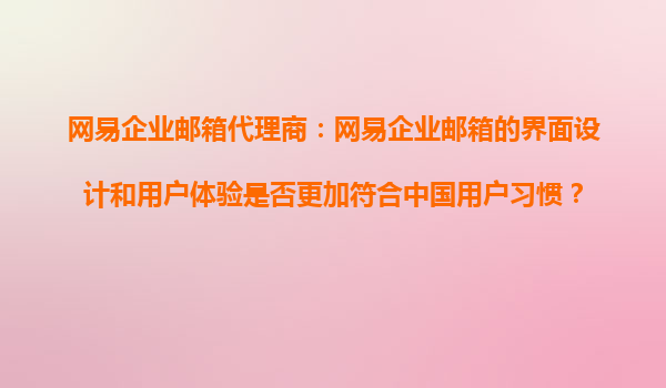 网易企业邮箱代理商:网易企业邮箱的界面设计和用户体验是否更加符合中国用户习惯?