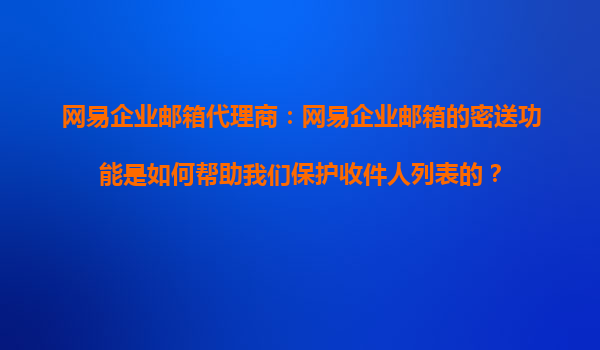 网易企业邮箱代理商:密送功能如何保护收件人列表