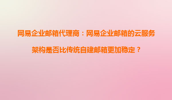 网易企业邮箱代理商:网易企业邮箱的云服务架构是否比传统自建邮箱更加稳定?