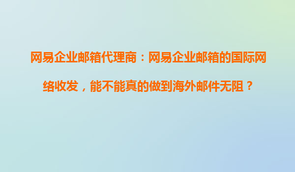 网易企业邮箱代理商:网易企业邮箱的国际网络收发,能否真正做到海外邮件无阻?