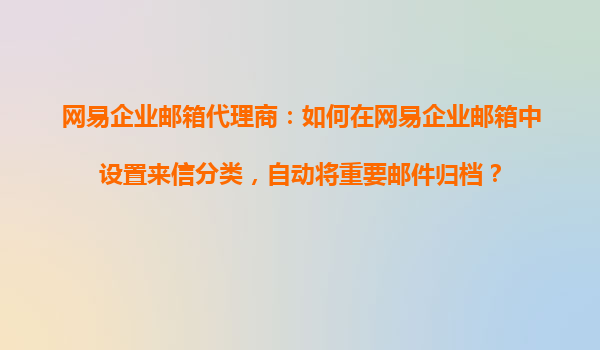 网易企业邮箱代理商:如何在网易企业邮箱中设置来信分类,自动将重要邮件归档?