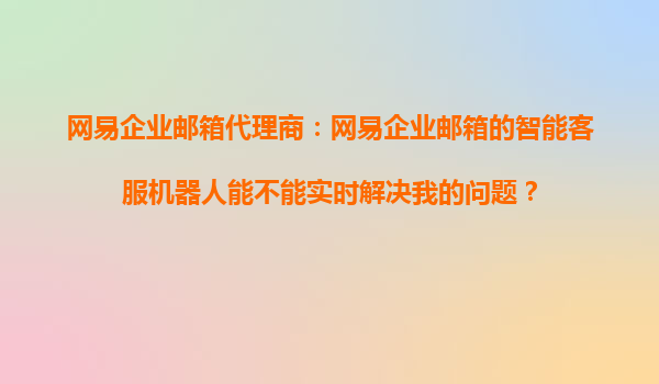 网易企业邮箱代理商:网易企业邮箱的智能客服机器人能不能实时解决我的问题?