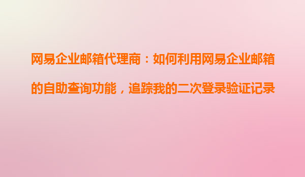 网易企业邮箱代理商:如何利用网易企业邮箱的自助查询功能,追踪二次登录验证记录?