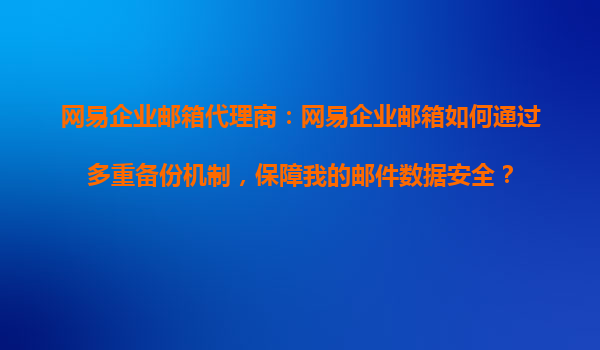 网易企业邮箱代理商:网易企业邮箱如何通过多重备份机制,保障我的邮件数据安全?