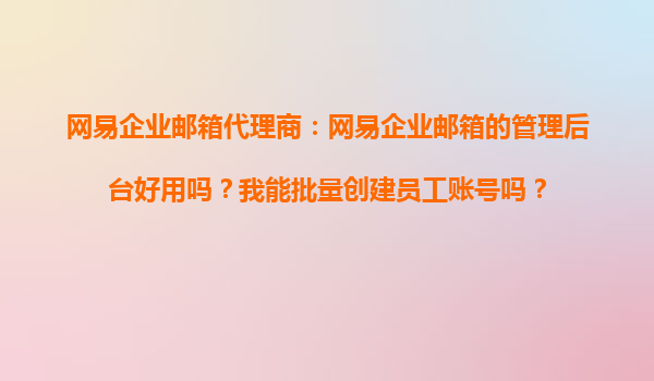 网易企业邮箱代理商:网易企业邮箱的管理后台好用吗?我能批量创建员工账号吗?