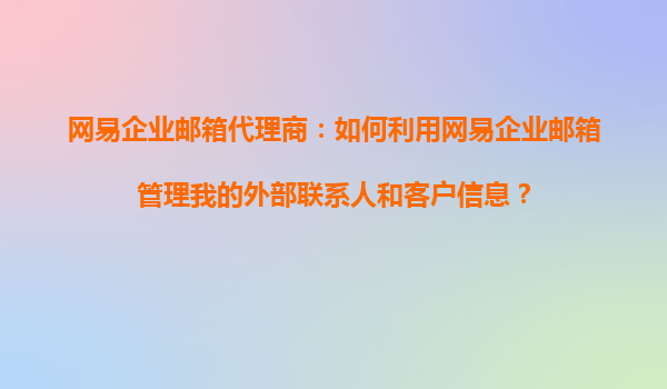 网易企业邮箱代理商:如何利用网易企业邮箱管理我的外部联系人和客户信息?