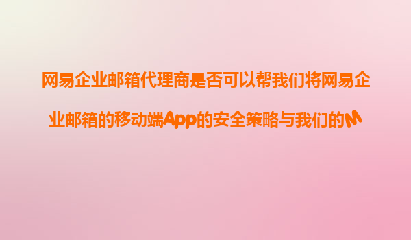 网易企业邮箱代理商能否助力移动端app安全策略与MDM系统集成?