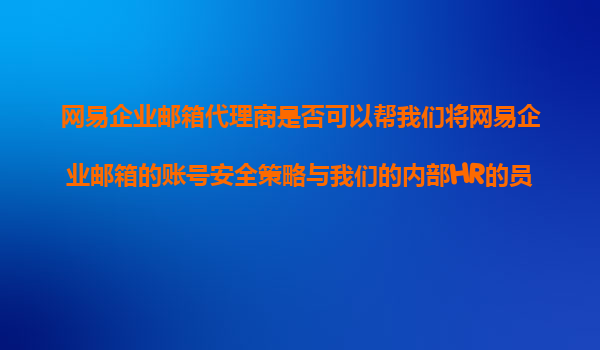 网易企业邮箱代理商能否实现与HR员工身份认证系统的安全策略集成?