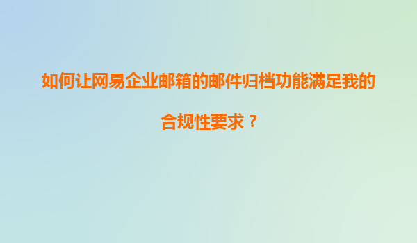 网易企业邮箱邮件归档功能如何满足合规性要求