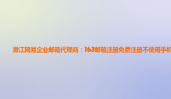 潜江网易企业邮箱代理商:163邮箱注册免费注册不使用手机号