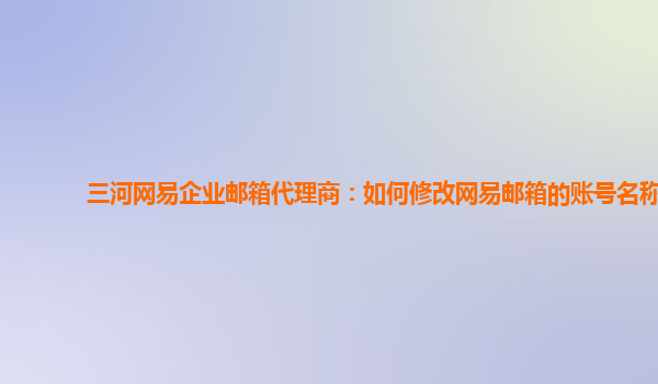 三河网易企业邮箱代理商:如何修改网易邮箱的账号名称