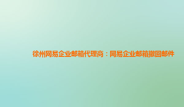 徐州网易企业邮箱代理商:网易企业邮箱撤回邮件