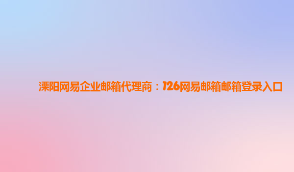 网易企业邮箱代理商:126网易邮箱邮箱登录入口