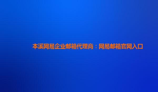 本溪网易企业邮箱代理商:网易邮箱官网入口