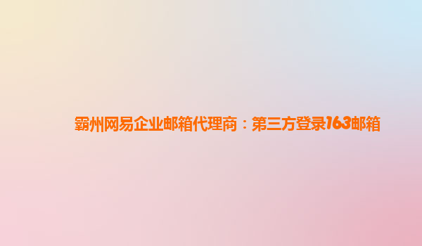 霸州网易企业邮箱代理商:第三方登录163邮箱