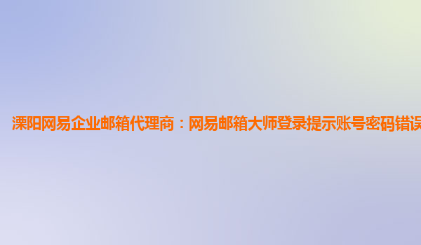 溧阳网易企业邮箱代理商:网易邮箱大师登录提示账号密码错误怎么回事