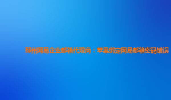 邳州网易企业邮箱代理商:苹果绑定网易邮箱密码错误
