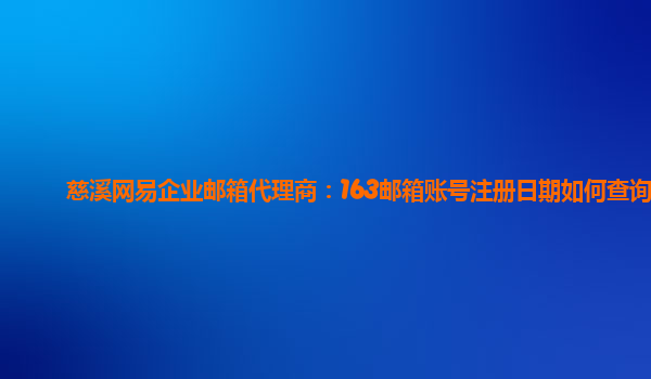 慈溪网易企业邮箱代理商:163邮箱账号注册日期如何查询