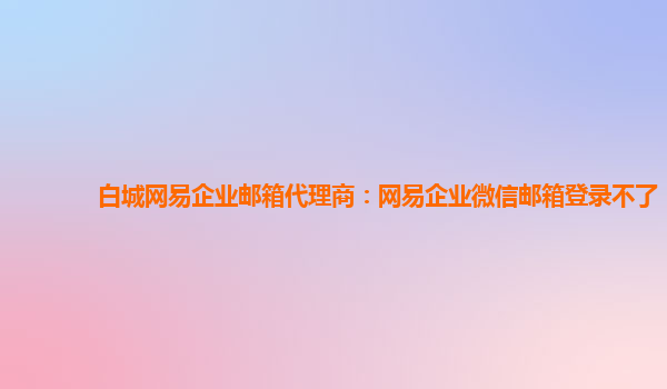 作为白城网易企业邮箱代理商,我们常常收到客户反馈:无法登录网易企业微信邮箱。针对这个问题,我们做出以下解答: