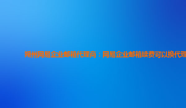 朔州网易企业邮箱代理商:网易企业邮箱续费可以换代理