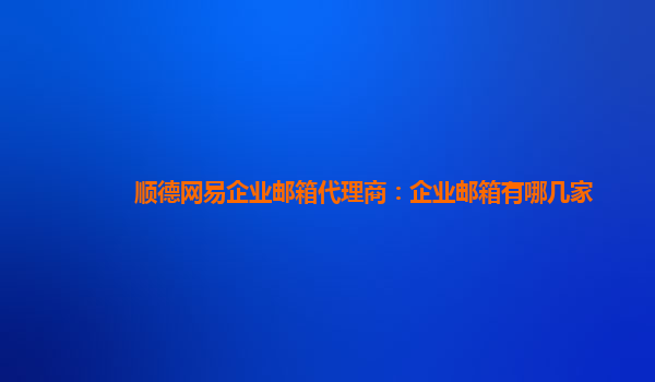 顺德网易企业邮箱代理商:企业邮箱有哪几家