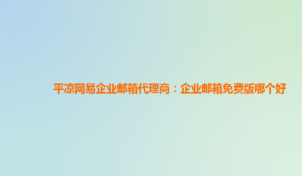 平凉网易企业邮箱代理商:企业邮箱免费版哪个好