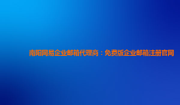 南阳网易企业邮箱代理商:免费版企业邮箱注册