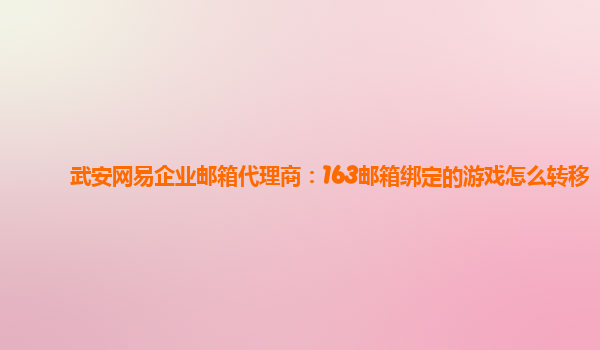 武安网易企业邮箱代理商:163邮箱绑定的游戏怎么转移