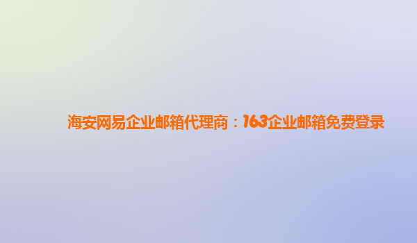 海安网易企业邮箱代理商:163企业邮箱免费登录