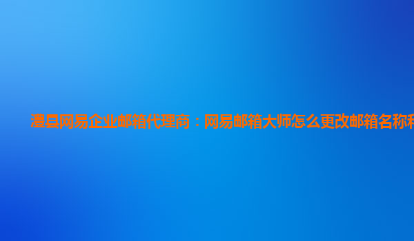 澧县网易企业邮箱代理商:网易邮箱大师怎么更改邮箱名称和密码