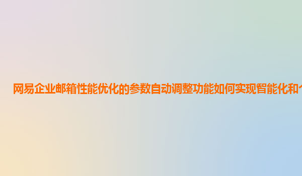 随着信息化时代的快速发展,企业邮箱作为现代办公中的重要工具,扮演着至关重要的角色。网易企业邮箱不仅提供稳定、安全、高效的邮件服务,还致力于通过性能优化和智能化调整功能,为用户提供更加个性化的体验。本文将深入探讨如何通过网易企业邮箱的参数自动调整功能实现智能化和个性化,提升用户的使用体验。