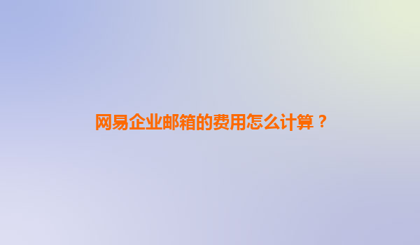 一、网易企业邮箱的费用计算方式