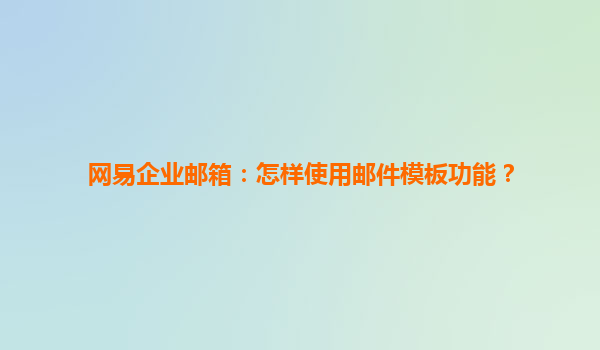 如何在网易企业邮箱中使用邮件模板功能