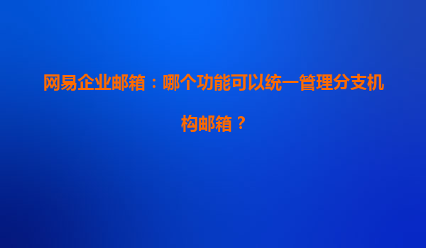 网易企业邮箱:如何统一管理分支机构邮箱?