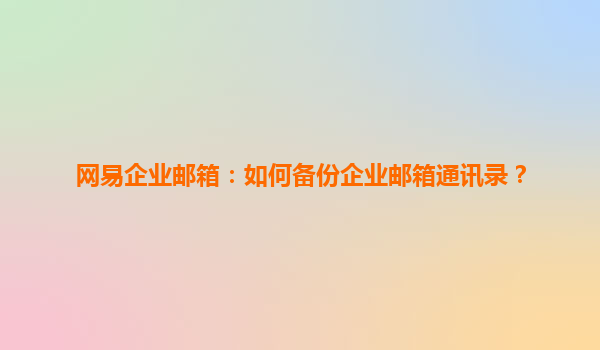 在现代企业管理中,电子邮件系统是沟通和日常运作不可或缺的一部分。网易企业邮箱作为市场上的主要服务之一,提供了稳定和安全的邮件处理解决方案。本文将详细介绍如何备份网易企业邮箱中的通讯录,确保重要数据的安全性和可靠性。