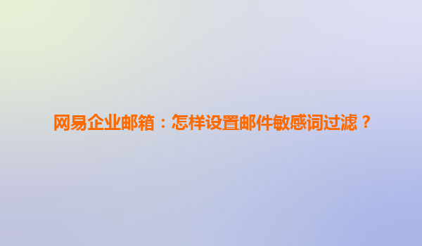 如何在网易企业邮箱中设置邮件敏感词过滤